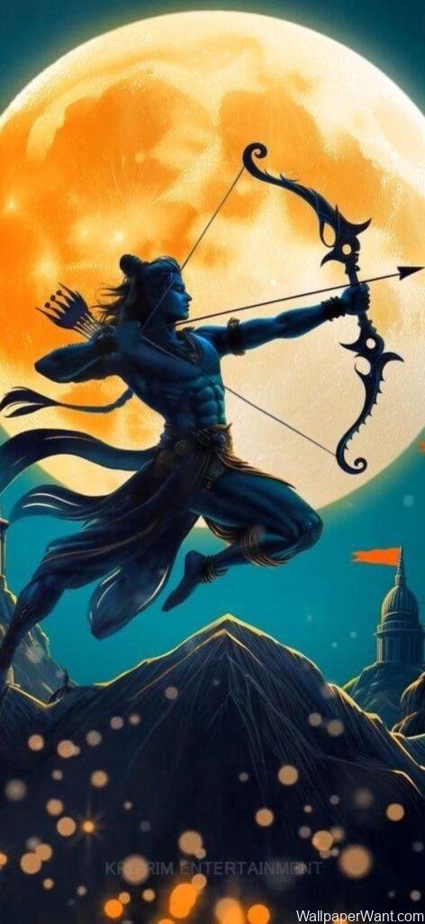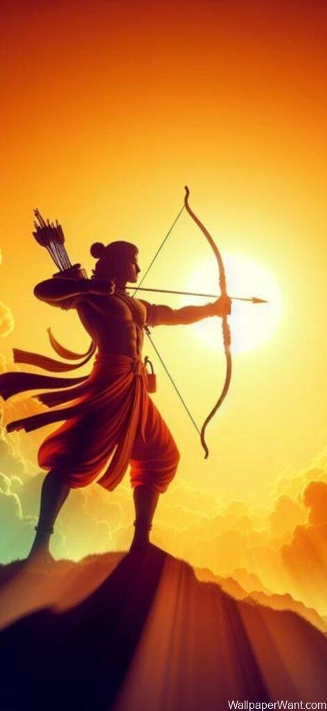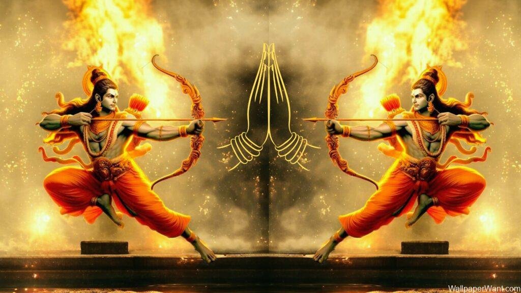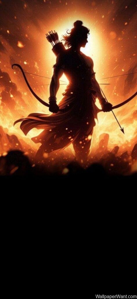 Epic-style wallpapers that show Lord Ram as a divine warrior, often with fire backgrounds, lightning effects, or powerful stances.